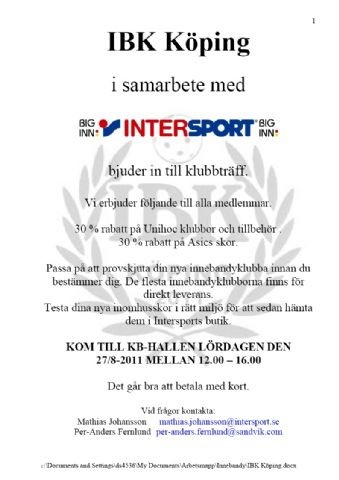 Hej alla medlemmar Nu är det dax med en klubbdag! Klicka på bilden för att förstora den. Med vänliga hälsningar Ledarna Herrar Div 3/HJ 19 aug 2011 0kommentarer