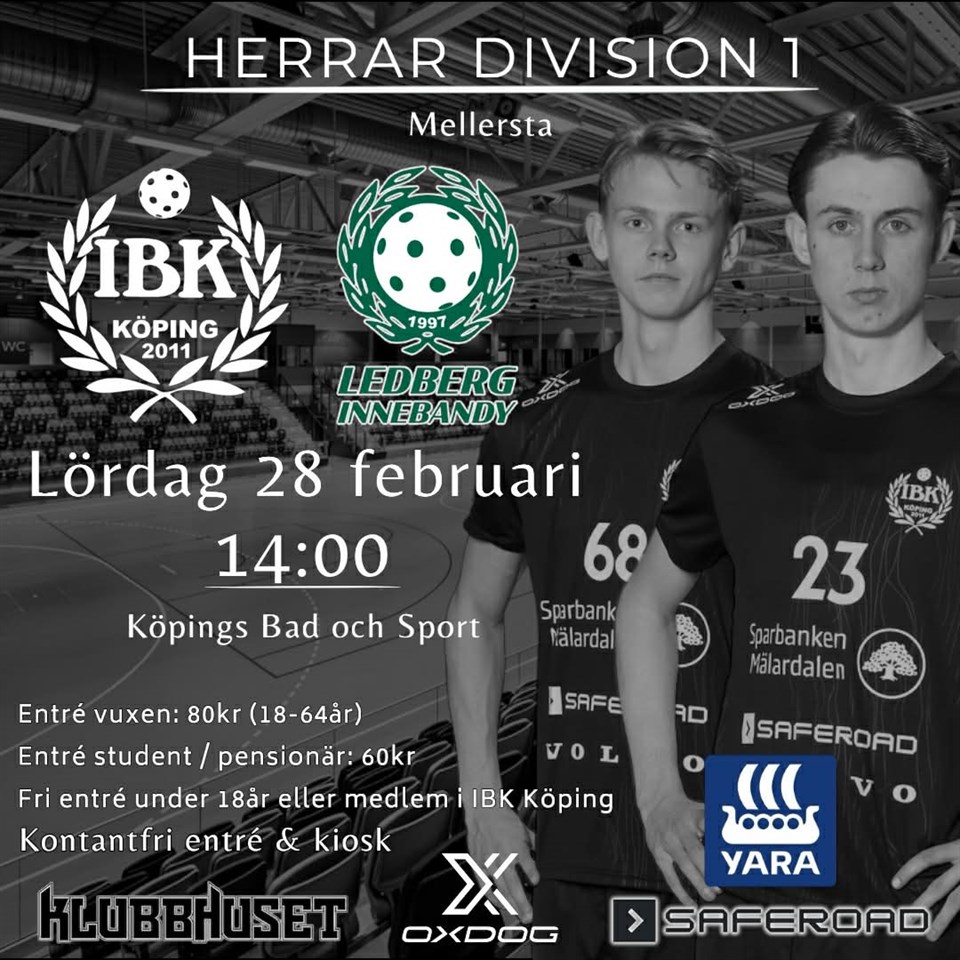 | Herrar Div 1 Ledberg IBF (hemma) | 28 feb, 14:00 |