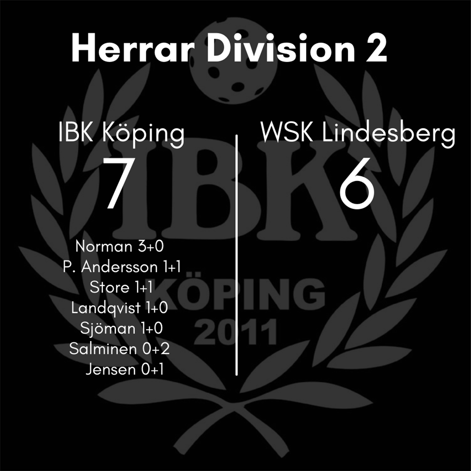 Thomas Norman sköt det förlösande segermålet i förlängningen i en match som svängde fram och tillbaka. IBK hade en tidig tvåmålsledning som sedan gästande WSK Lindesberg tog igen för att sin tur gå upp med två med bara minuter kvar. Men IBK visade moral och gick ikapp, och kunde därefter knipa den viktiga bonuspoängen i jakt på kvalplats. Ledarstaben håller fram Niclas Buréns och Mikael Landqvists insatser på backposition, samt Mattias Sjömans och Thomas Normans offensiva verkstad. Premier League-matchandet fortsätter, ny hemmamatch på lördag mot Skälby Ung och sedan on tour mot IBK Hallsta på måndag.